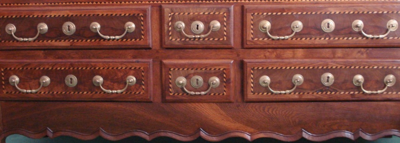 | | Matériau Chêne et noyer massif incrusté de frises